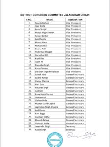 जालंधर, रोजाना भास्कर ब्यूरो: Indian National Congress की जालंधर शहरी इकाई की 51 पदाधिकारियों की सूची जारी होते ही संगठन में बवाल मच गया। प्रदेश प्रधान Amrinder Singh Raja Warring द्वारा घोषित सूची में 5 स्पेशल इनवाइटी पदों को लेकर अंदरूनी खींचतान तेज हो गई है।