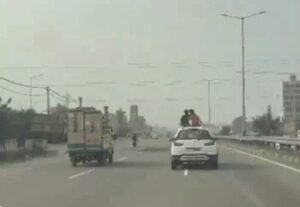 जालंधर, रोजाना भास्कर (हरीश शर्मा): जालंधर-लुधियाना नेशनल हाईवे पर एक खतरनाक घटना सामने आई, जहां दौड़ती हुई कार के सनरूफ से छोटे बच्चे बाहर निकलकर स्टंट करते नजर आए। कार की रफ्तार करीब 70 किलोमीटर प्रति घंटा थी और बच्चे लगभग 15 किलोमीटर तक इसी तरह बाहर निकले रहे। इस खतरनाक हरकत का एक राहगीर ने वीडियो बना लिया, जो सोशल मीडिया पर तेजी से वायरल हो गया।