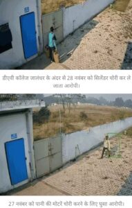 CCTV फुटेज में चोर पहले दिन दो पानी की मोटरें और अगले दिन गैस सिलेंडर चुराकर दीवार फांदते हुए दिखाई दिया।