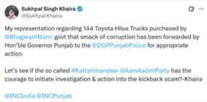 विधायक खैहरा ने आरोप लगाया है कि 2024 में SSF के लिए खरीदी गई टोयोटा हिलक्स गाड़ियों की खरीद में करीब ₹14.50 करोड़ का घोटाला हुआ है। उनका कहना है कि कंपनी व्यक्तिगत खरीदारों को ₹10 लाख तक की छूट देती है, लेकिन सरकार ने यह लाभ नहीं लिया, जिससे राज्य को बड़ा वित्तीय नुकसान हुआ।