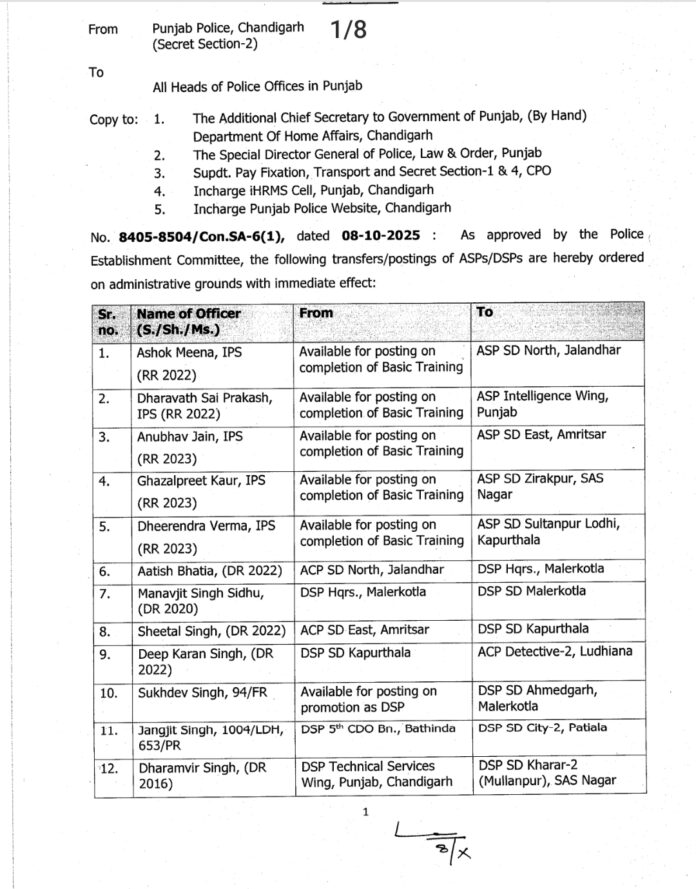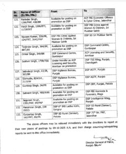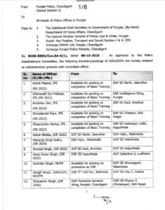 रोजाना भास्कर (चंडीगढ़): पंजाब सरकार ने प्रशासनिक सुधार और बेहतर कार्य निष्पादन के लिए 133 अधिकारियों के तबादले और नियुक्ति आदेश जारी किए हैं। इस आदेश के तहत पांच आईपीएस अधिकारियों को नई जिम्मेदारियों के साथ तैनात किया गया है।
