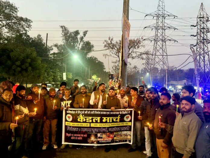 बांग्लादेश में हिंदुओं के नरसंहार के खिलाफ भाजपा युवा मोर्चा ने कैंडल मार्च निकाल प्रदर्शन किया