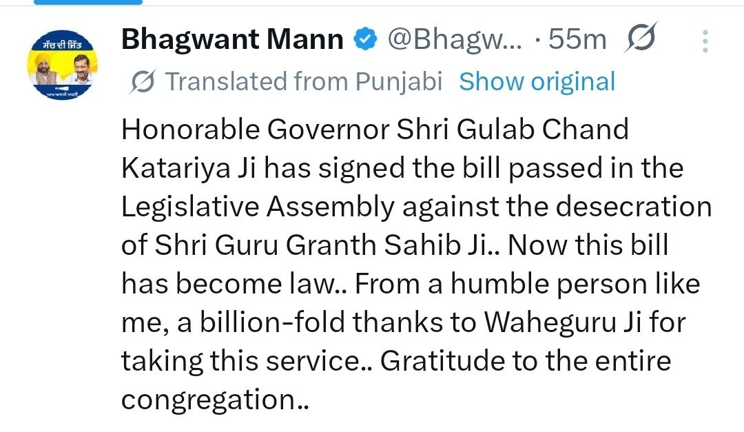 अब अंतिम अधिसूचना जारी होते ही यह विधेयक कानून का रूप ले लेगा और पूरे प्रदेश में लागू हो जाएगा। संशोधित प्रावधानों के तहत श्री गुरु ग्रंथ साहिब की बेअदबी के मामलों में दोषी पाए जाने पर उम्रकैद तक की सजा का प्रावधान किया गया है।