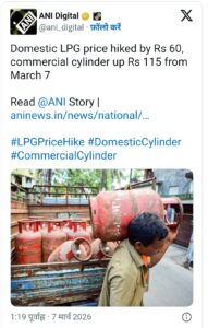 नई दिल्ली/जालंधर, रोजाना भास्कर (हरीश शर्मा): आम आदमी की रसोई पर एक बार फिर महंगाई की मार पड़ी है। 7 मार्च से 14.2 किलोग्राम वाले घरेलू एलपीजी सिलेंडर की कीमत में 60 रुपये की बढ़ोतरी कर दी गई है, जबकि 19 किलोग्राम के व्यावसायिक सिलेंडर के दाम 115 रुपये बढ़ा दिए गए हैं। नई दरें तत्काल प्रभाव से लागू हो चुकी हैं, जिससे घरों के साथ-साथ होटल, रेस्तरां और छोटे व्यापारियों पर भी अतिरिक्त बोझ पड़ेगा।