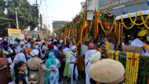 जालंधर, रोजाना भास्कर (हरीश शर्मा): ਨਿਰੰਕਾਰੀ ਜੋਤ ਜਗਤ ਗੁਰੂ ਧੰਨ ਧੰਨ ਸਾਹਿਬ ਸ੍ਰੀ ਗੁਰੂ ਨਾਨਕ ਦੇਵ ਜੀ ਦੇ ਪ੍ਰਕਾਸ਼ ਪੁਰਬ ਨੂੰ ਸਮਰਪਿਤ ਨਗਰ ਕੀਰਤਨ ਜਲੰਧਰ ਵਿੱਚ ਸਜਾਇਆ ਗਿਆ ਨਗਰ ਕੀਰਤਨ ਵਿੱਚ ਵੱਡੀ ਗਿਣਤੀ ਵਿੱਚ ਸਿੱਖ ਸੰਗਤਾਂ ਤੇ ਗੁਰੂ ਨਾਨਕ ਨਾਮ ਲੇਵਾ ਸੰਗਤਾਂ ਸ਼ਾਮਿਲ ਹੋਈਆਂ ਨਗਰ ਕੀਰਤਨ ਵੱਖ-ਵੱਖ ਪੜਾਵਾਂ ਤੋਂ ਹੁੰਦਾ ਹੋਇਆ ਜਦੋਂ ਸਿੱਖ ਤਾਲਮੇਲ ਕਮੇਟੀ ਦੇ ਮੁੱਖ ਦਫਤਰ ਪੁਲੀ ਅਲੀ ਮਹੱਲਾ ਵਿਖੇ ਪਹੁੰਚਿਆ ਜਿੱਥੇ ਸੰਗਤਾਂ ਲਈ ਵੱਖ-ਵੱਖ ਪਦਾਰਥਾਂ ਦੇ ਲੰਗਰ ਲਗਾਏ ਗਏ।