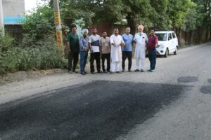 आज अग्रवाल ठेकेदार के मुलाजिम अपनी धाँधली रिश्वत को छुपाने के लिए पेच वर्क कर रहे थे पर इस पेच वर्क को भाजपा के नेता प्रदीप खुल्लर ने साथी साथी जा कर रुकवाया और कहा ही जे सड़क जिसमे घपला होय है उसे फिर से नई तरीके से बढ़िया मटीरियल लगा कर बनाई जाए।